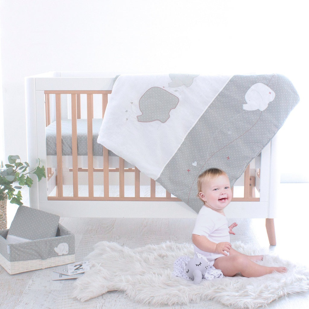 Our Petit Elephant 6 Piece Baby Gift Set is the ultimate gift or starter set for that special baby and includes all the essentials you'll need to set up a beautiful nursery. Little ones will adore whimsical elephants in neutral grey and white with a touch of carnival red and polka dot accents. Get ready for spotty dotty elephant fun with this sweet design.