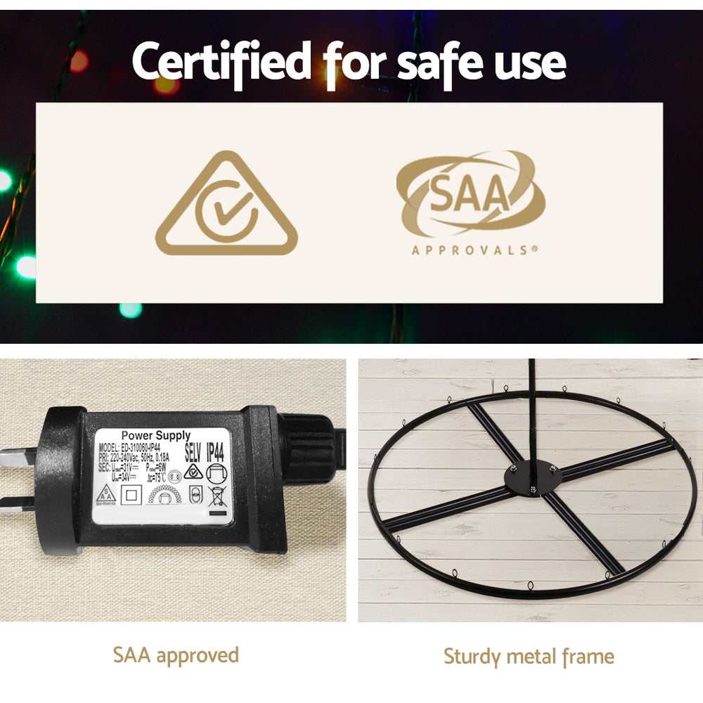 Create a dazzling display of Christmas spirit with our Multi-coloured LED Christmas Tree. This 3.6m tall tree is certainly an illuminating experience for everyone to enjoy near and far, day and night. Suitable for both indoor and outdoor use, the stylized tree is designed with a conical tree-like shape featuring a powder coated steel frame. Wrapped around this tree are 400 Multi-coloured LED lights with eight different lighting effects to bring on a mesmerizing and brilliant light show for the festive season. Easy to set up with no tools required, the tree also includes an extra long 10m cable for a hassle-free installation.