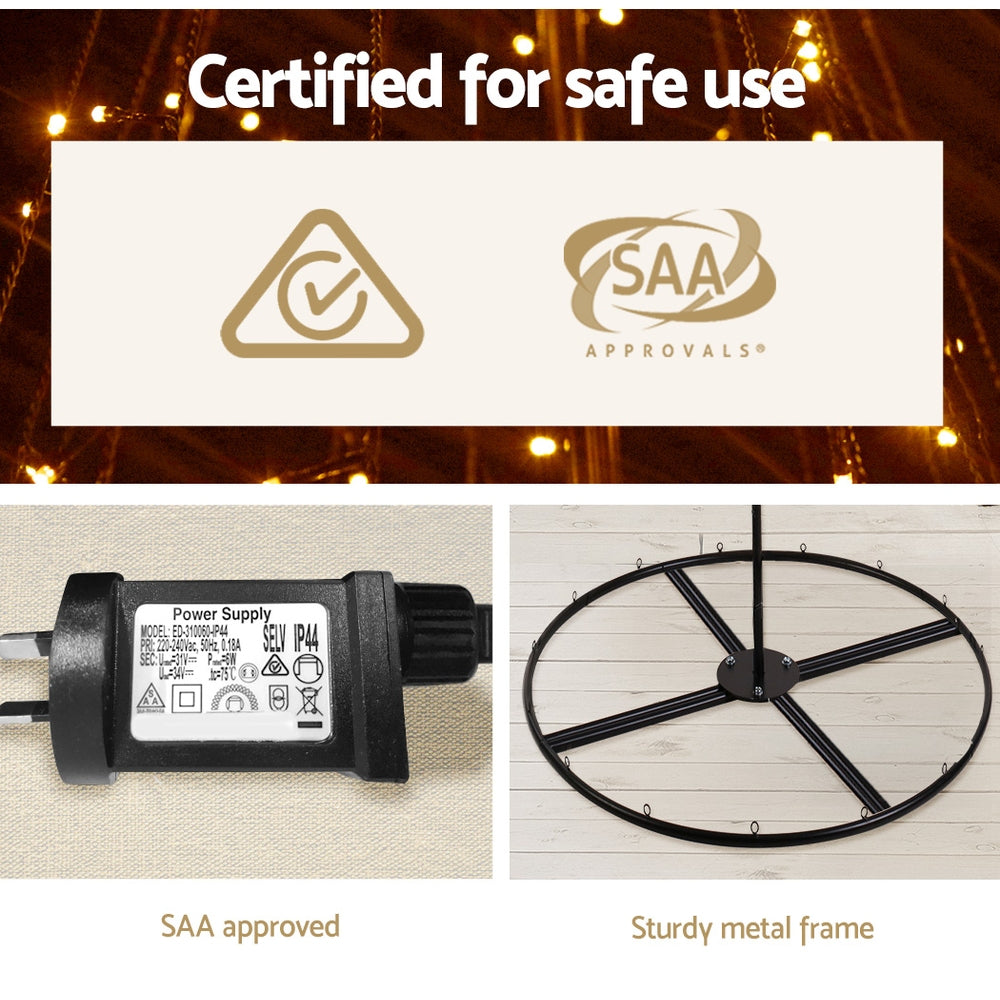 Create a dazzling display of Christmas spirit with our warm white LED Christmas Tree. This 3.6m tall tree is certainly an illuminating experience for everyone to enjoy near and far, day and night. Suitable for both indoor and outdoor use, the stylized tree is designed with a conical tree-like shape featuring a powder coated steel frame. Wrapped around this tree are 400 warm white LED lights with eight different lighting effects to bring on a mesmerizing and brilliant light show for the festive season. Easy to set up with no tools required, the tree also includes an extra long 10m cable for a hassle-free installation.