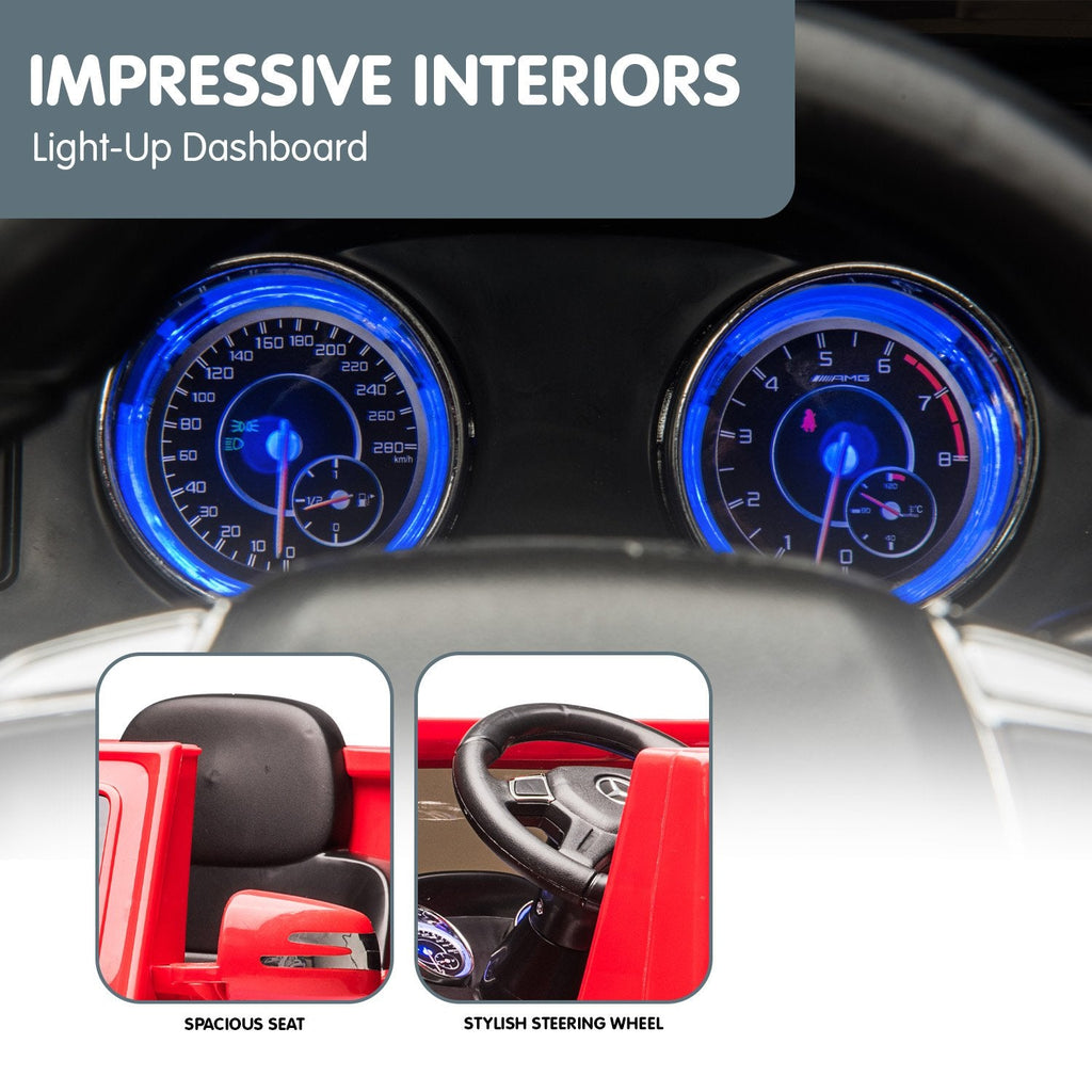 Introducing the Mercedes Benz AMG G65 Ride-On Car - the most awesome gift for little drivers. This sporty Mercedes-licensed replica boasts the sporty silhouette and cools the detailing of its full-size counterpart.