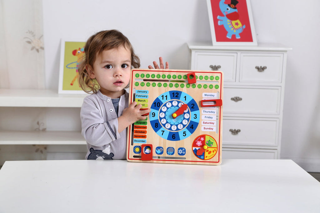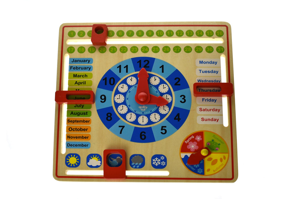 Multiple learning and fun activities with this wooden calendar. Learn the days of the week, months, weathers, seasons, and time.