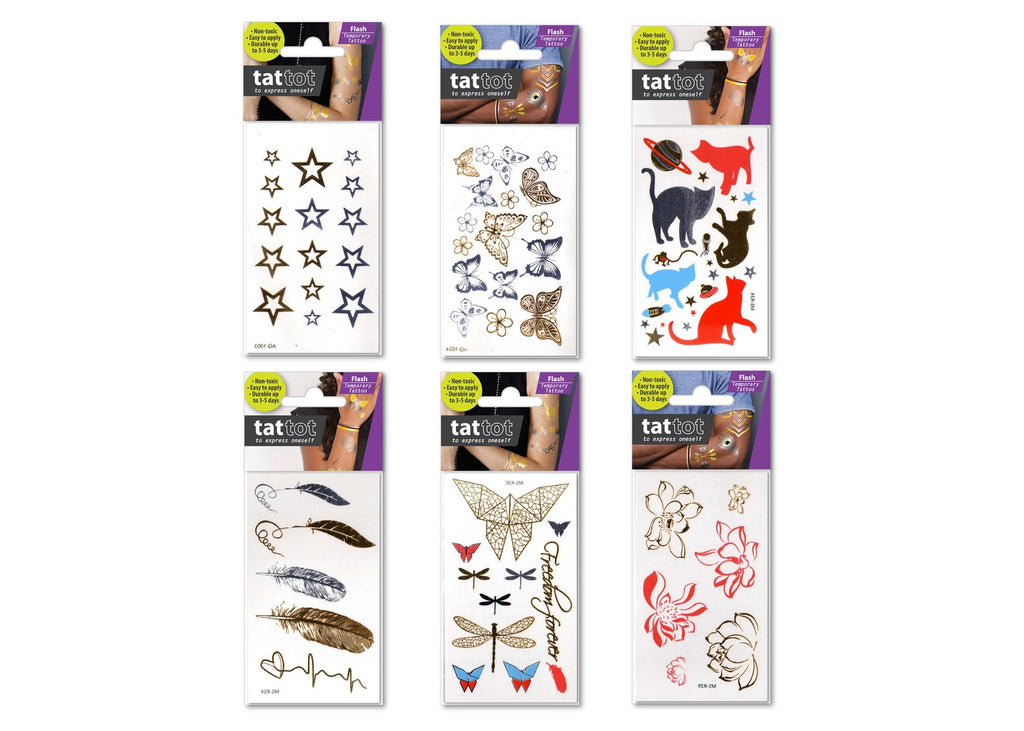 Set of 6 Temporary Tattoo, looks cool and no regret. Non-toxic, can be easily applied, stay on up to 5 days. Does not wash off by water and soap. Use hand cream, baby oil or alcohol pads to remove. Conforms to EN71 and EC 1223/2009 cosmetic requirements.