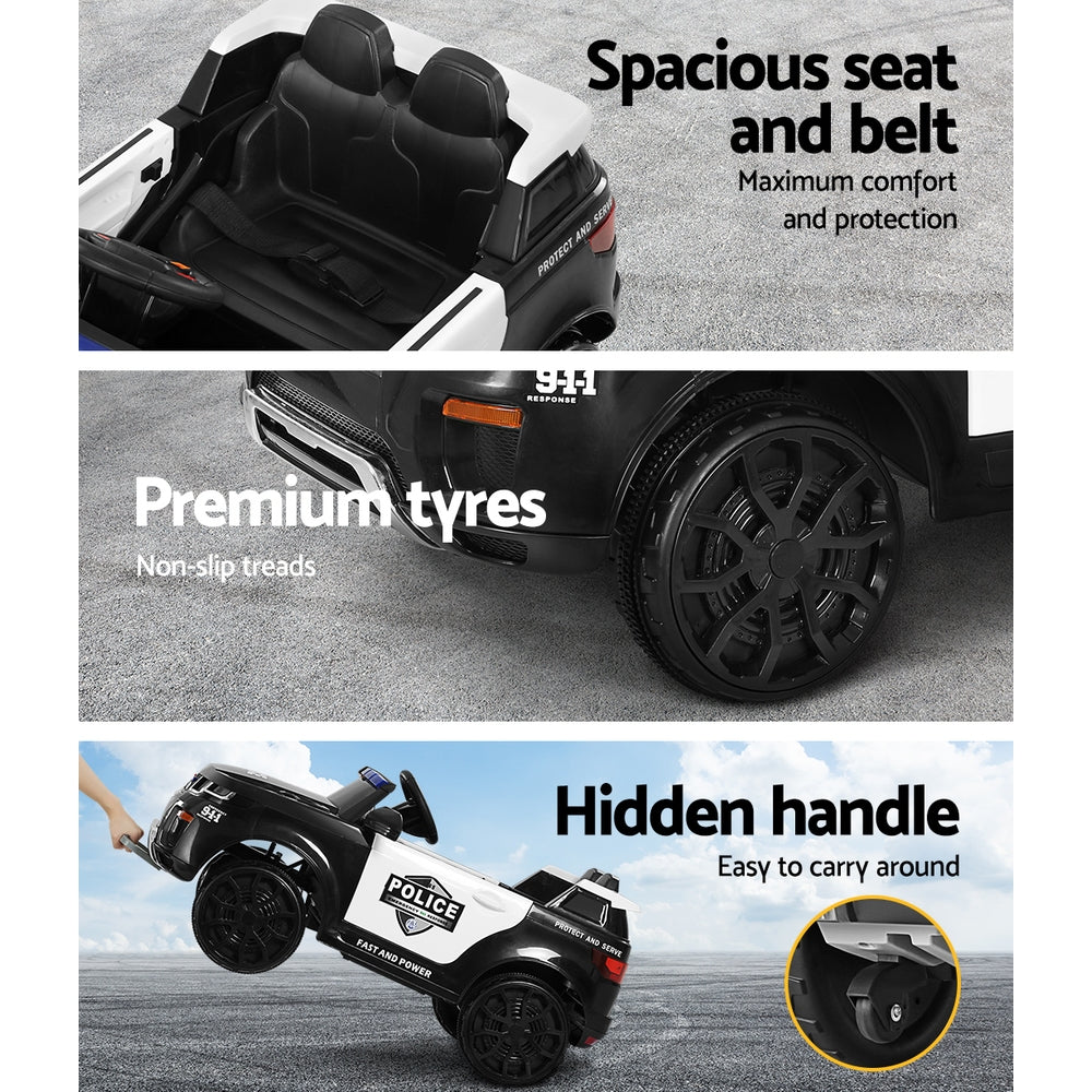 Whether your kids are on spy missions or role-playing as police, our Rigo kids ride on police cars are sure to be a hit. They are a joy to ride, help foster gross motor skills, and look like real police cars. Boasting brilliant looks, performance, and charisma, our ride on police-inspired car features a robust exterior design with a brilliant lacquer finish and solid build. It has powerful 50W twin motors for exhilarating performance, premium slip-resistant tyres, flashing police lights, smooth acceleration to prevent sudden jerks and stops, and a spacious seat with an adjustable safety belt for maximum comfort and protection. Plus, it has open roof design, lockable doors, smart keyless start, functional dashboard, and other functions like MP3 player, horn, power switch, alarm switch, high/low speed mode, and a foot pedal for a real-like driving experience. Our ride on police car is battery operated with up to 8-12 hours runtime per full charge and comes with a SAA-approved charger for safer and faster charging. With two control modes, the adult remote-control function and EN71 Standard Safety of Toys certification ensures the safety of your child, and the hidden handle makes it easy to carry the ride on car. Purchase this real-like and robust Rigo police-inspired ride on car and watch your kids having unlimited fun with their mates.